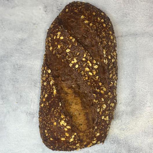 Vores Schweizerbrød er et lækkert mørkt brød, bagt på en ciabattadej, tilsat mørk malt for en mere bitter og dyb smag. Toppet med havre og sprød skorpe.
