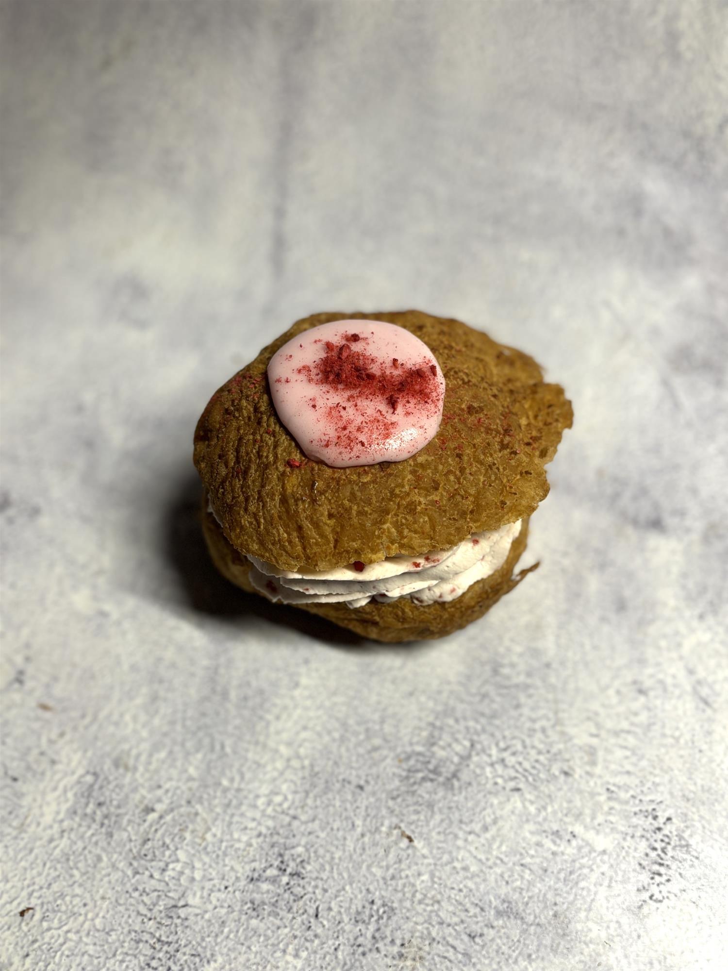 Wienerbrødsbolle, hindbærfløde, creme og glasur