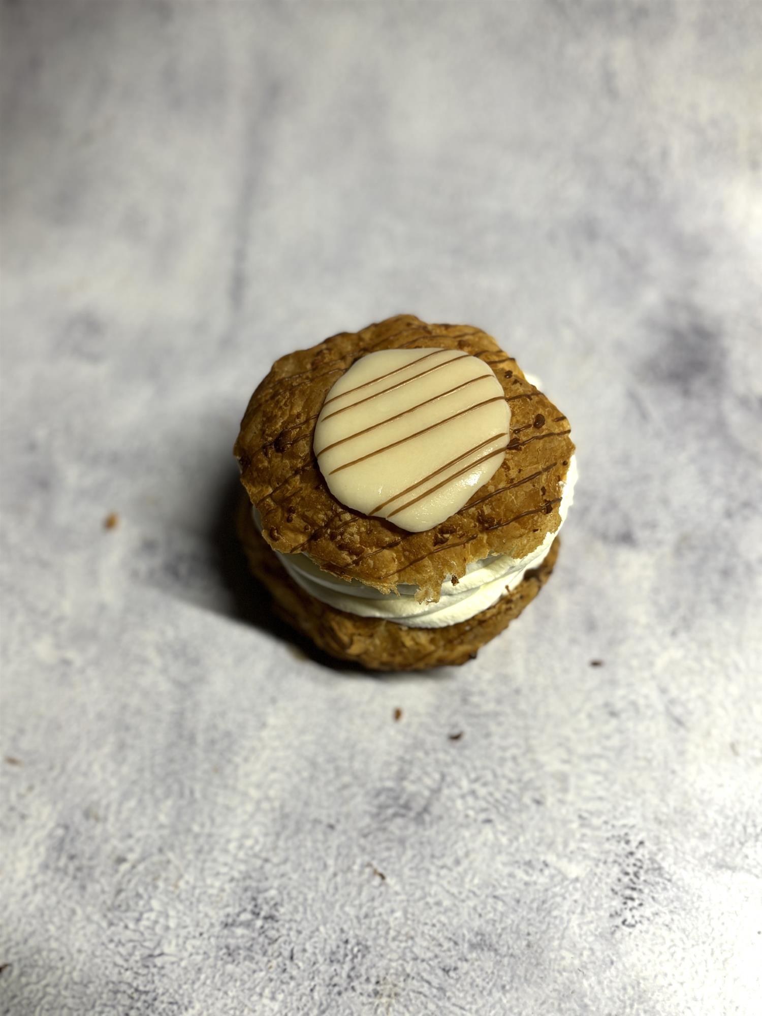 Wienerbrødsbolle, fløde, creme, en trøffel og romglasur
