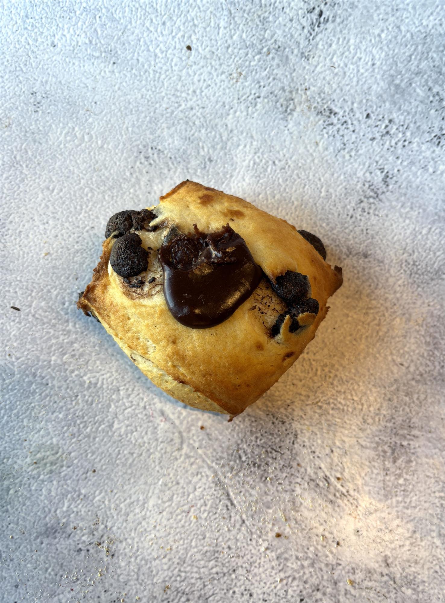 Lækker scones med store chokoladestykker! Toppet med chokoladeglasur.